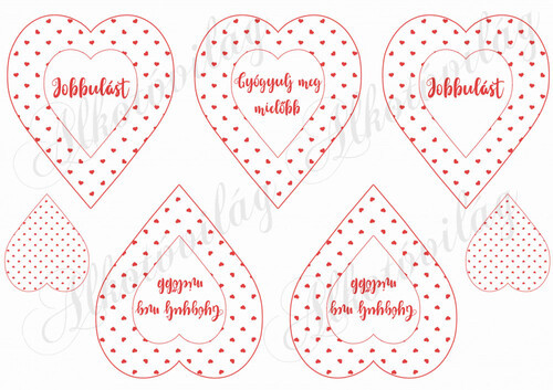 Piros apró szív mintás szívek Jobbulást és Gyógyulj meg feliratokkal - Több mint 20 alapanyagon elérhető.