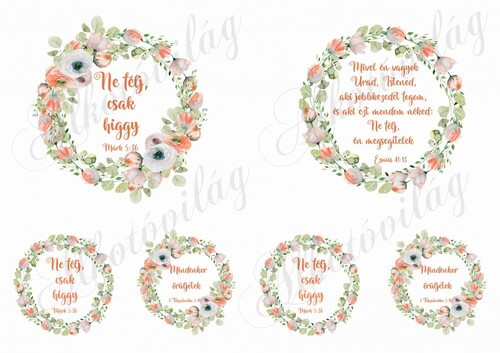 Ne félj, csak higgy idézet virágkoszorúval 10-13 cm-es hímzőkerethez