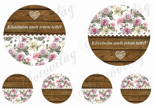 KÖSZÖNÖM AMIT ÉRTEM TETTÉL fa és rózsás mintás körökön - Több mint 20 alapanyagon elérhető.