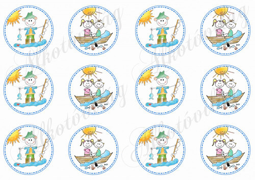 Balatoni képek - horgász és csónakázó emberkék körökben - Több mint 20 alapanyagon elérhető.