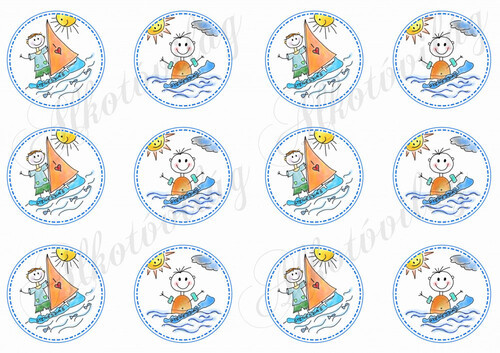 Balatoni képek - szörföző és fürdőző emberkék körökben - GYENESDIÁS felirattal - Több mint 20 alapanyagon elérhető.