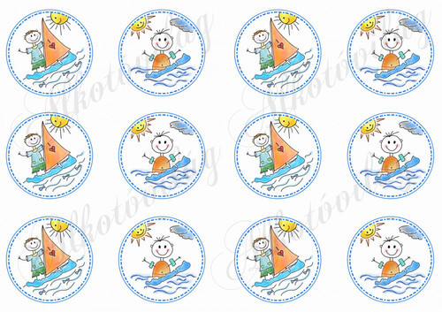 Balatoni képek - szörföző és fürdőző emberkék körökben - Több mint 20 alapanyagon elérhető.