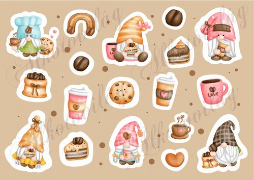 Kávés manók matricán - Több mint 20 alapanyagon elérhető.