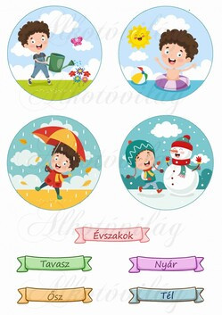 Évszakok gyerekes képekkel és feliratokkal - Több mint 20 alapanyagon elérhető.
