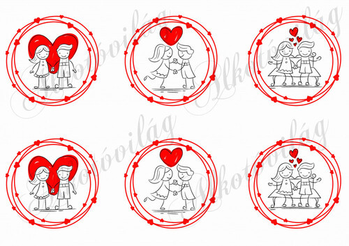 Kézzel rajzolt fiú-lány szíves koszorúkban VALENTIN napra - Több mint 20 alapanyagon elérhető.