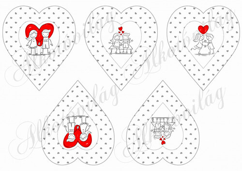 Kézzel rajzolt fiú-lány szürke apró szíves szívekben - Több mint 20 alapanyagon elérhető.