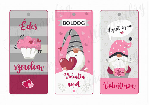 Valentin napi kártyák cuki manókkal, feliratokkal