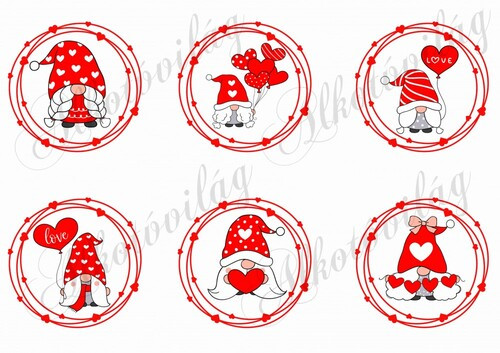 Valentin napi manók szív lufikkal szíves koszorúkban - Több mint 20 alapanyagon elérhető.