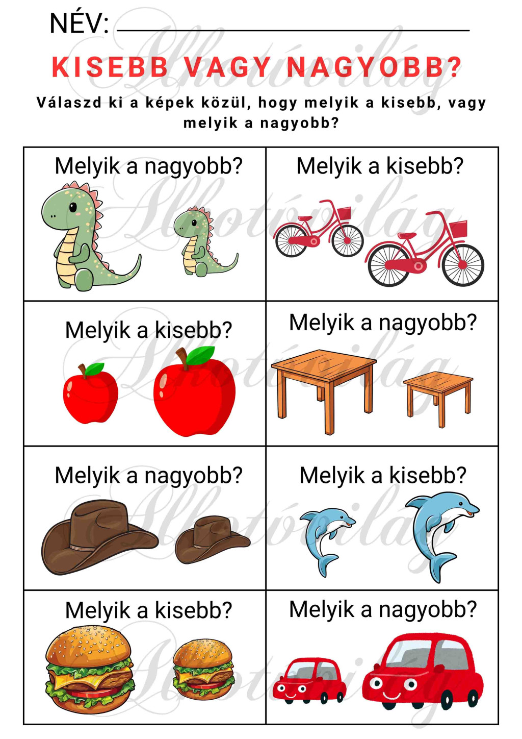 Készségfejlesztő lap - MÉRETEK GYAKORLÁSA