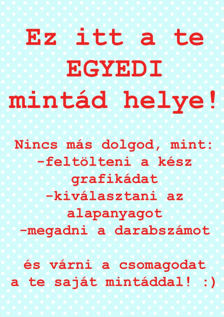 Amennyiben szöveget írtok rá, vékony, írott betűk nem ajánlottak ha filcre szeretnétek kérni!!!