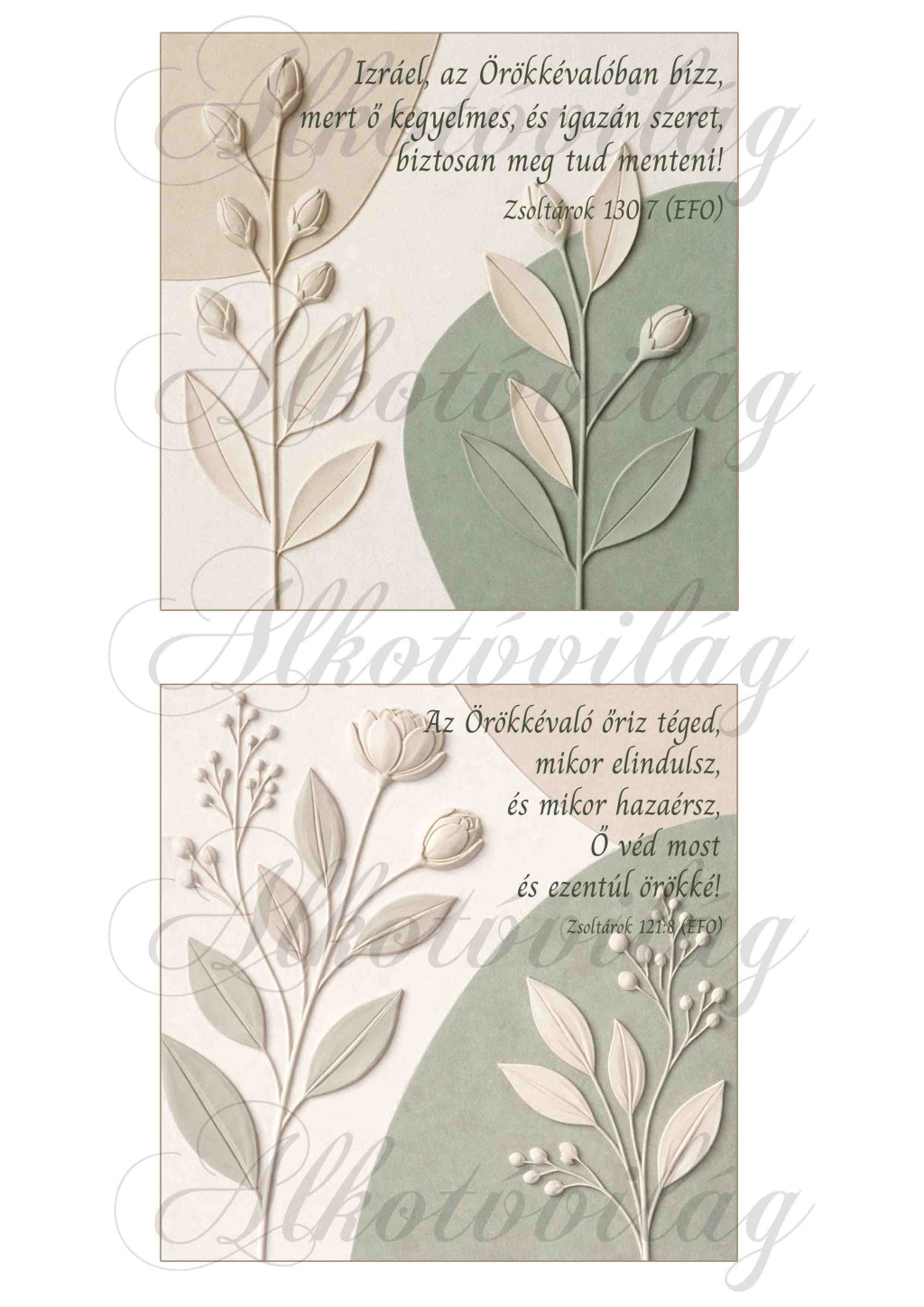 Minimal stílusú kép virágokkal, pasztell barna és zöld színekben - BIBLIAI IDÉZETTEL - 14 x 14 cm