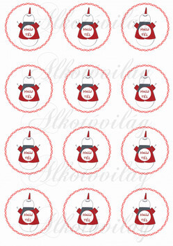 Hóemberkék Helló TÉL felirattal piros csavart körökben KICSIBEN
