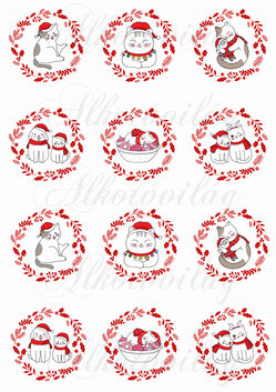 Tüneményes cicusok mikulássapkában karácsonyi koszorúkkal KICSIBEN - Több mint 20 alapanyagon elérhető.
