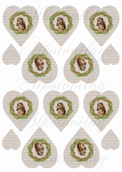 Kézzel festett ló karácsonyi koszorúban hullámpapír struktúrájú szíveken KICSIBEN - Több mint 20 alapanyagon elérhető.