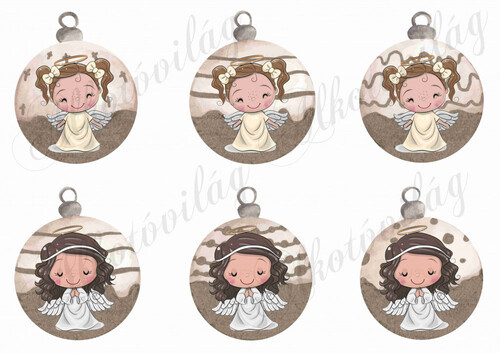 Vintage karácsonyi gömbök cuki kislány angyalkákkal - Több mint 20 alapanyagon elérhető.