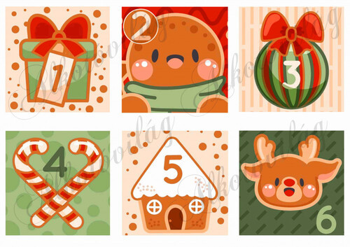 Cuki adventi naptár mézeskalács figurákkal piros-zöld árnyalatban - NAGYBAN - 1. rész - Több mint 20 alapanyagon elérhető.
