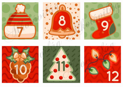 Cuki adventi naptár mézeskalács figurákkal piros-zöld árnyalatban - NAGYBAN - 2. rész - Több mint 20 alapanyagon elérhető.