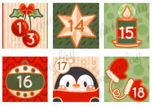 Cuki adventi naptár mézeskalács figurákkal piros-zöld árnyalatban - NAGYBAN - 3. rész - Több mint 20 alapanyagon elérhető.