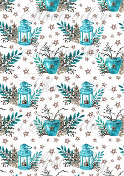 Karácsonyi mintás készlet kék-barna színekben - mécses, csillag, bogyós ágak - Több mint 20 alapanyagon elérhető.