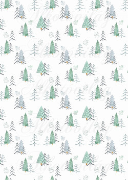 Kézzel festett skandináv szett zöldes-sárgás színben - Cuki fenyőfák és eső - Több mint 20 alapanyagon elérhető.