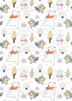 Kézzel rajzolt cuki erdőlakók szett - JEGESMACI, NYUSZI, MOSÓMACI, FÁK - Több mint 20 alapanyagon elérhető.