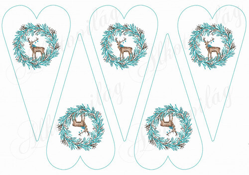Karácsonyi mintás készlet kék-barna színekben - szarvasok koszorúkban hosszúkás szíveken - Több mint 20 alapanyagon elérhető.
