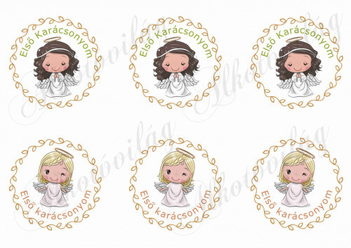 Szőke és barna angyalkák - ELSŐ KARÁCSONYOM felirattal - Több mint 20 alapanyagon elérhető.