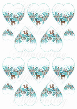 Karácsonyi mintás készlet kék-barna színekben - SZARVASOK HÁZIKÓKKAL SZÍVEKEN - KICSIBEN - Több mint 20 alapanyagon elérhető.