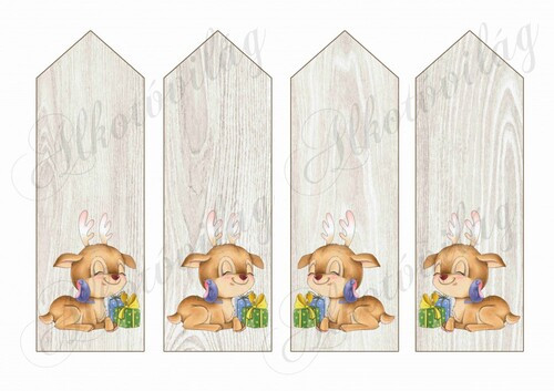 Könyvjelzők fa alapon cuki karácsonyi szarvasokkal, kismadárral, csomaggal