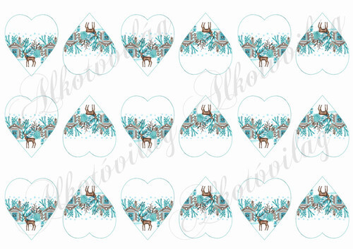Karácsonyi mintás készlet kék-barna színekben - SZARVASOK HÁZIKÓKKAL MINI SZÍVEKEN - 5 cm magas - Több mint 20 alapanyagon elérhető.