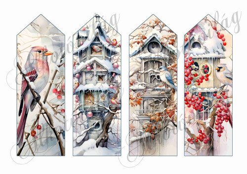 Könyvjelzők karácsonyi kismadarakkal és madáretetőkkel 2 - 16,5 x 5,5 cm - Több mint 20 alapanyagon elérhető.