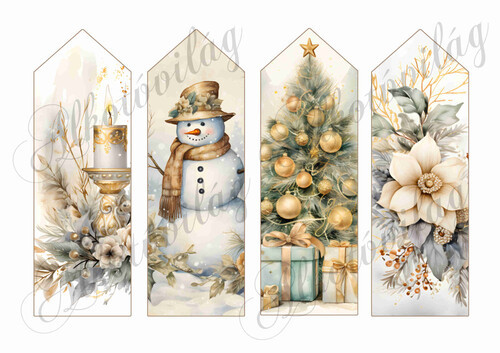Könyvjelzők karácsonyi mintákkal arany-barna árnyalatokban 16,5 x 5,5 cm - Több mint 20 alapanyagon elérhető.
