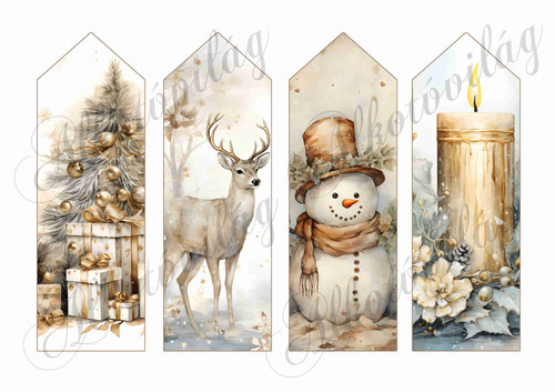 Könyvjelzők karácsonyi mintákkal arany-barna árnyalatokban 2 - 16,5 x 5,5 cm - Több mint 20 alapanyagon elérhető.