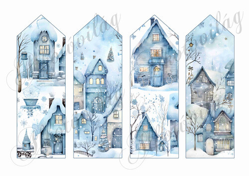Könyvjelzők karácsonyi mintákkal kékes árnyalatokban 16,5 x 5,5 cm - Több mint 20 alapanyagon elérhető.