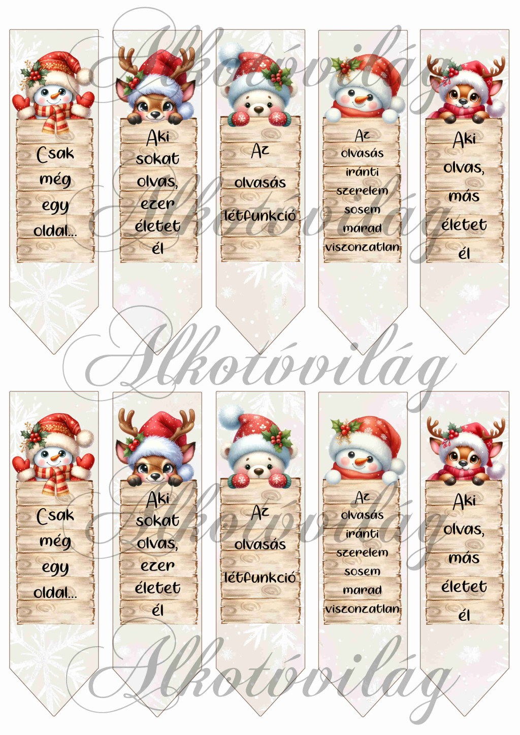 Könyvjelzők táblát tartó cuki figurákkal és idézetekkel - szarvas, hóember, maci - 13 x 3,7 cm - Több mint 20 alapanyagon elérhető.