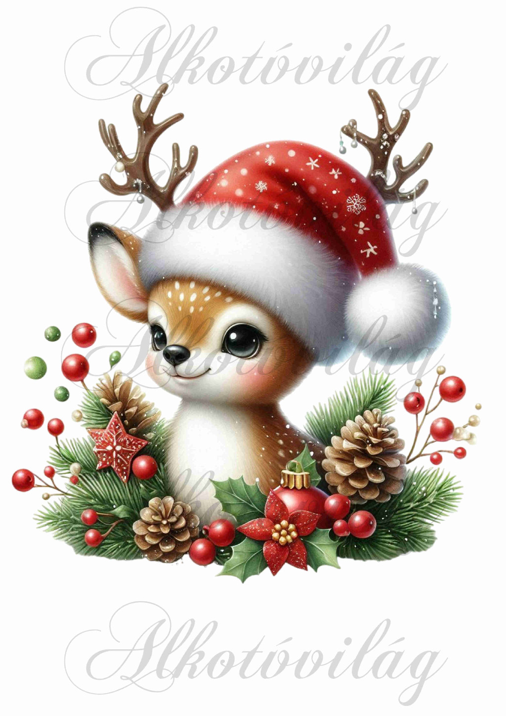 Párnablokk - vászontáska blokk - Cuki szarvas mikulássapkában 4 - Több mint 20 alapanyagon elérhető.