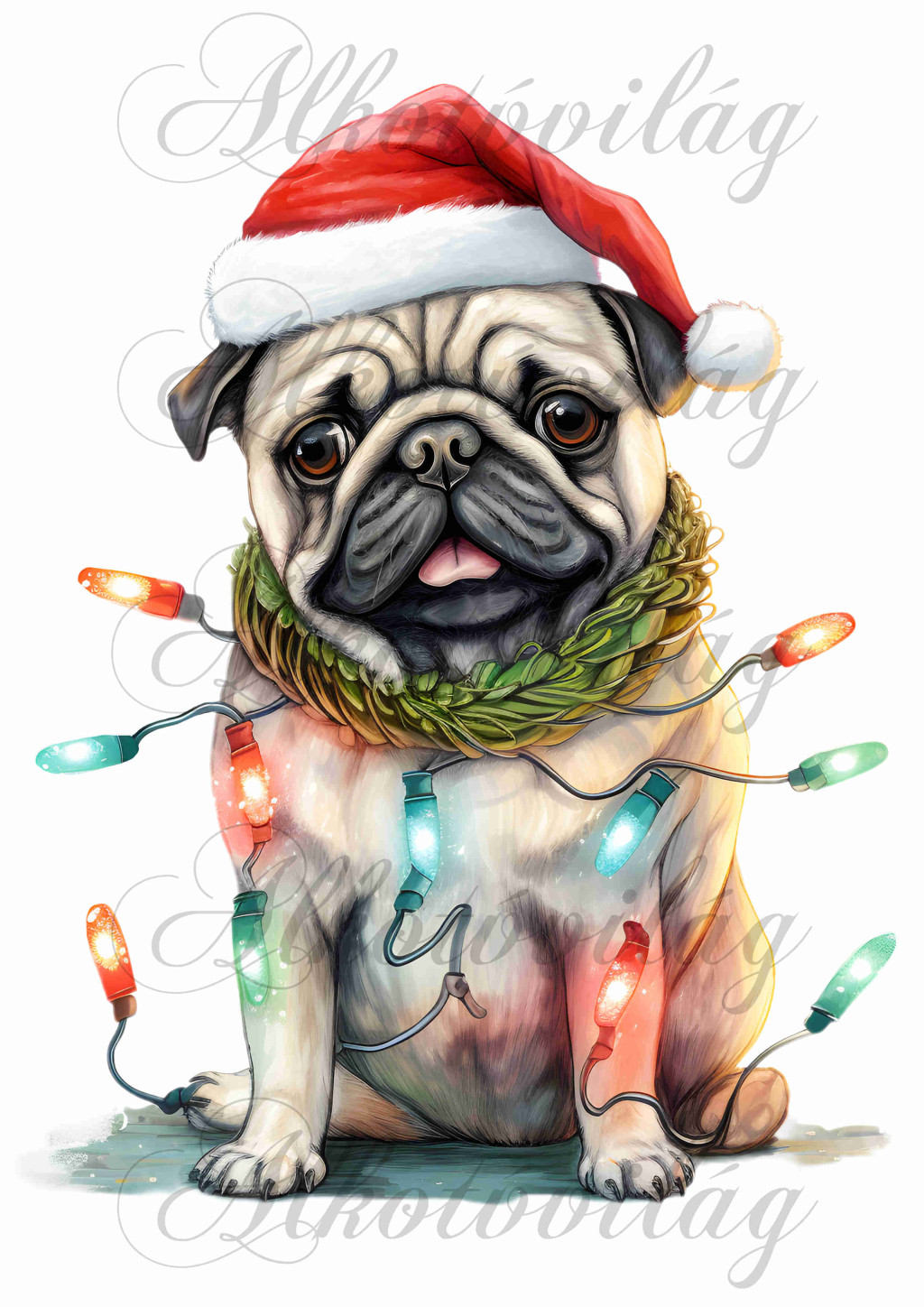 Párnablokk - vászontáska blokk mikulássapkás MOPSZ kutyussal - kb. 25 x 20 cm - Több mint 20 alapanyagon elérhető.