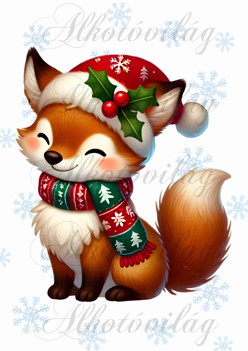 Párnablokk - vászontáska blokk - Cuki mosolygós mikulássapkás rókával