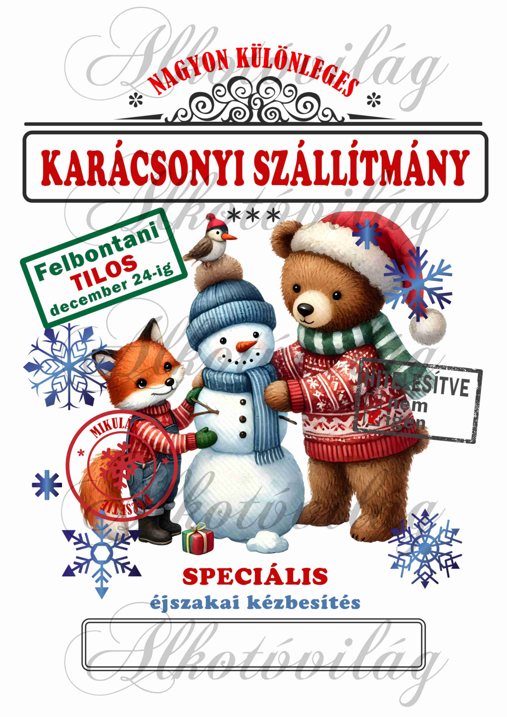 Mikulászsák aranyos róka és mackó hóembert épít cuki madárkával - december 24-re