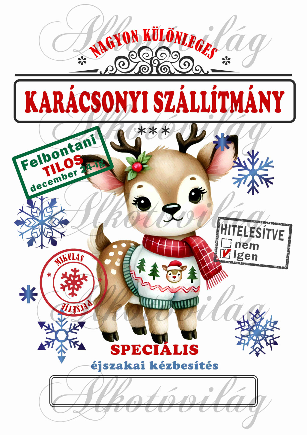 Mikulászsák aranyos szarvas sállal, ruhában - december 24-re