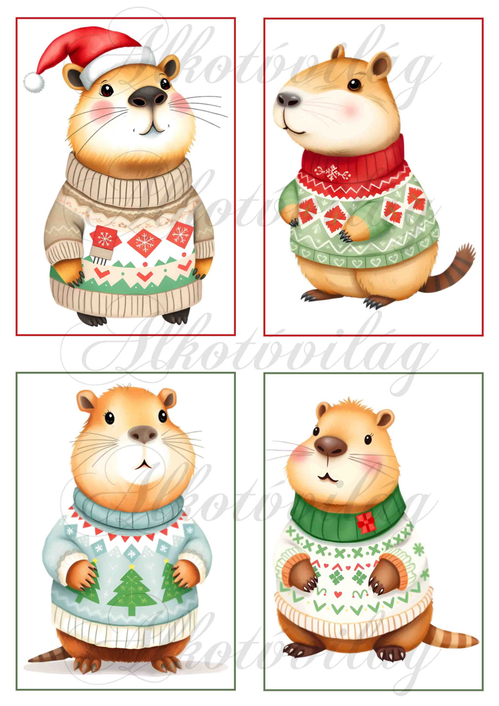 Cuki capybara figurák karácsonyi kötött pulcsiban 2 - 13 x 9 cm-es keretben