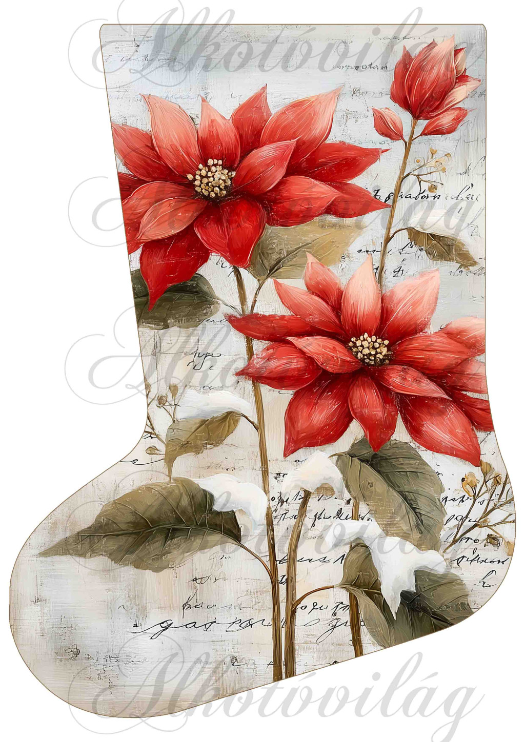 Mikuláscsizmák vintage karácsonyi hangulatban piros mikulásvirággal