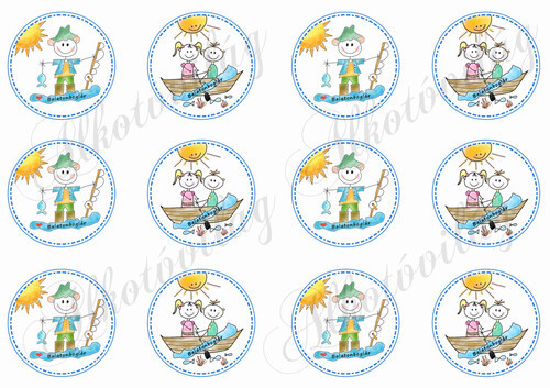 Balatoni képek - horgász és csónakázó emberkék körökben - BALATONBOGLÁR felirattal - Több mint 20 alapanyagon elérhető.