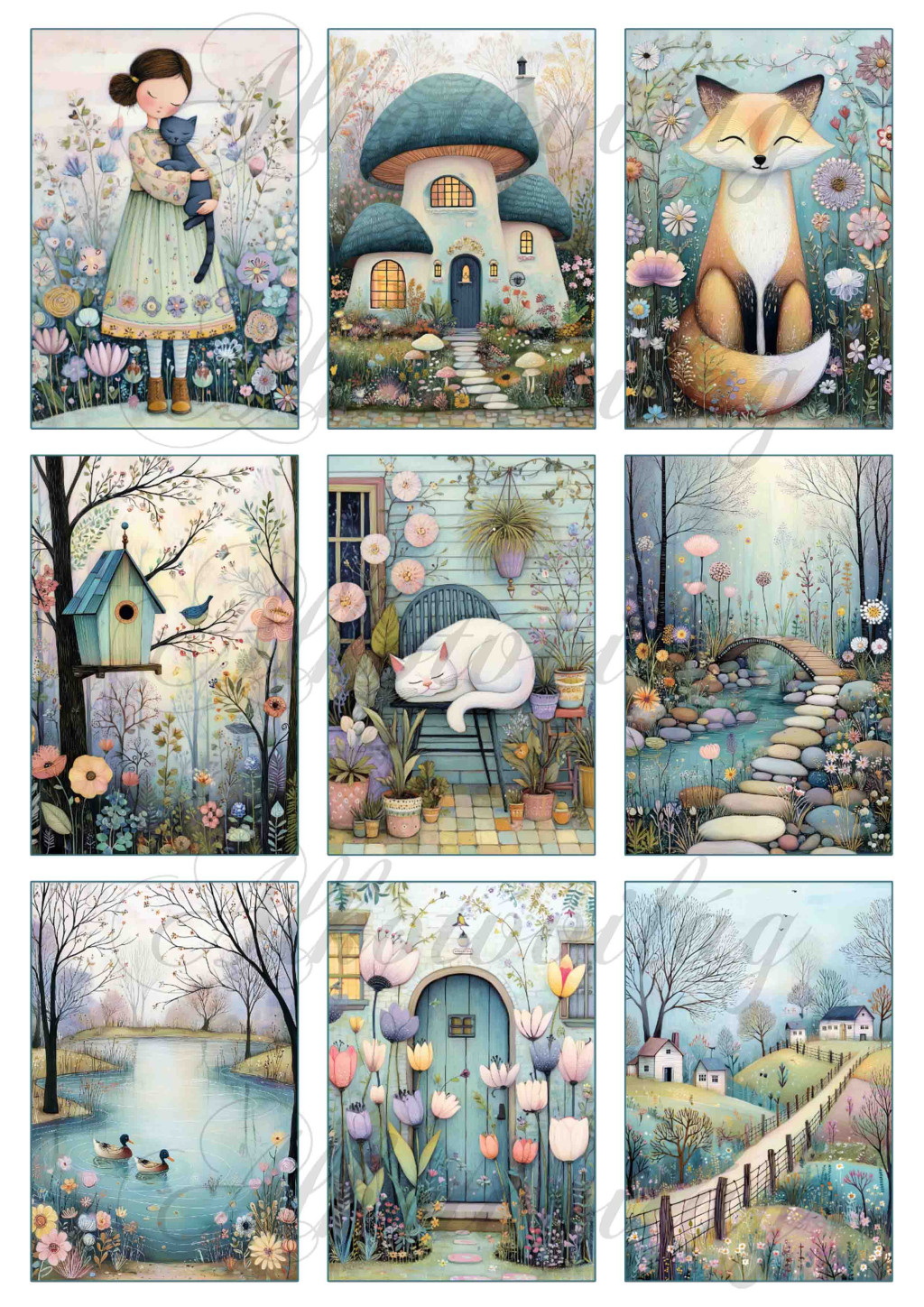 Kedves tavaszi hangulatú képek házikókkal, virágokkal 3 - 9 x 6 cm - HŰTŐMÁGNES, AJÁNDÉKKÍSÉGŐ készítéshez