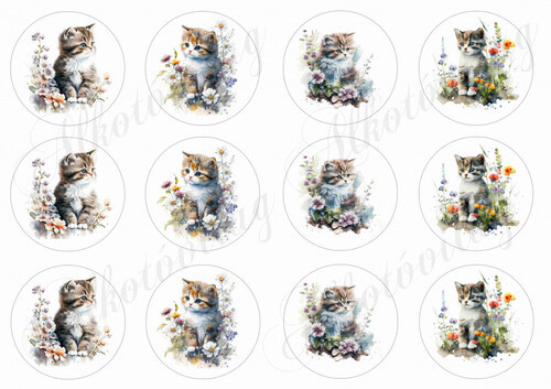 Körök négyféle akvarell stílusban festett cuki cicával és tavaszi virágokkal - Több mint 20 alapanyagon elérhető.