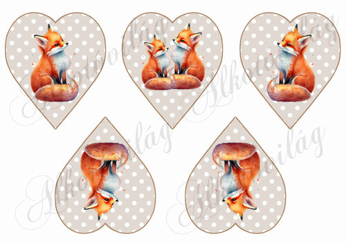 Cuki kézzel festett rókák drapp alapon fehér pöttyös szíveken - Több mint 20 alapanyagon elérhető.