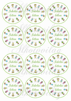 ISKOLÁS LETTEM feliratos körök rajzolt gyerekek mintával KICSIBEN