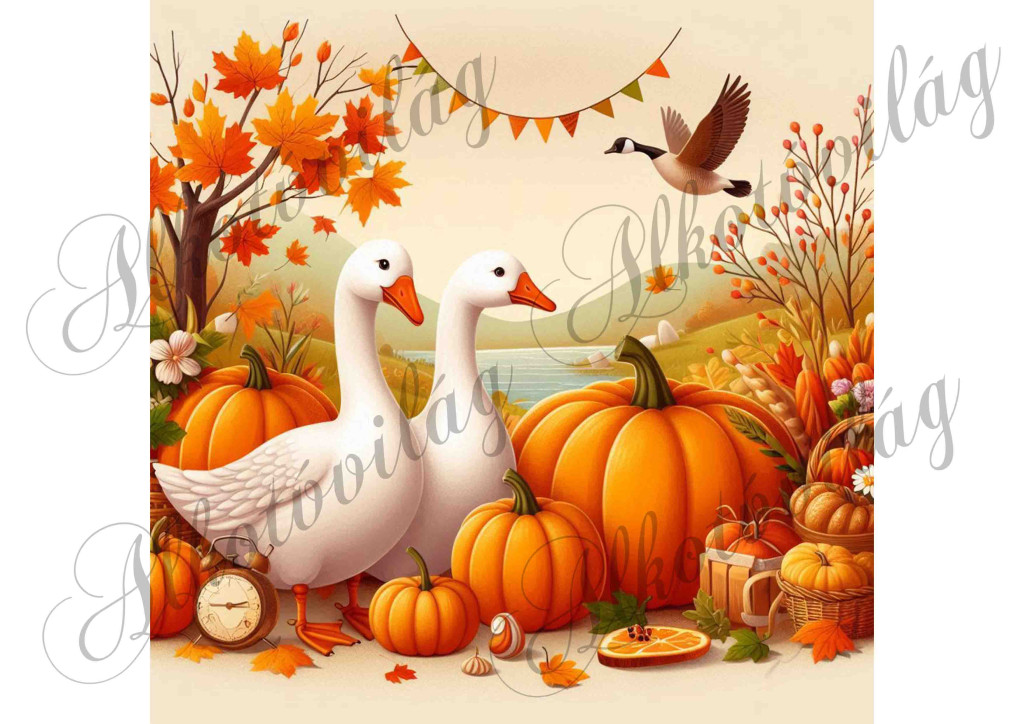Párnablokk - vászontáska blokk - Libás őszi kép tökökkel 3