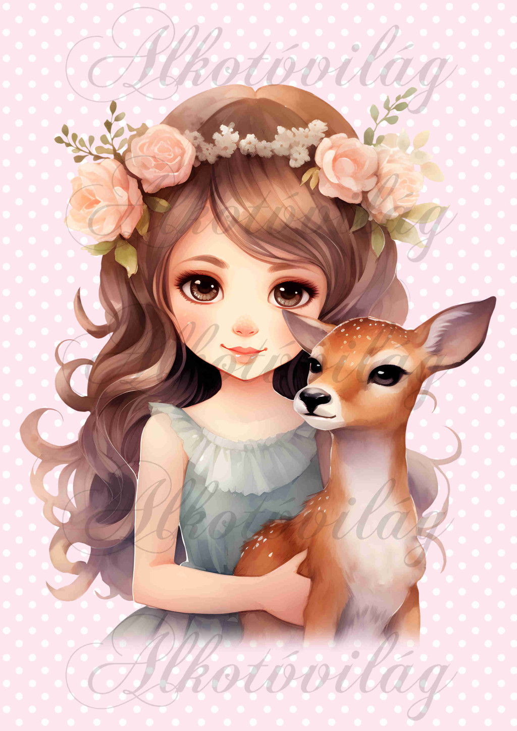 Párnablokk - vászontáska blokk - barna hajú hercegnő őzikével - rózsaszín pöttyös háttérrel