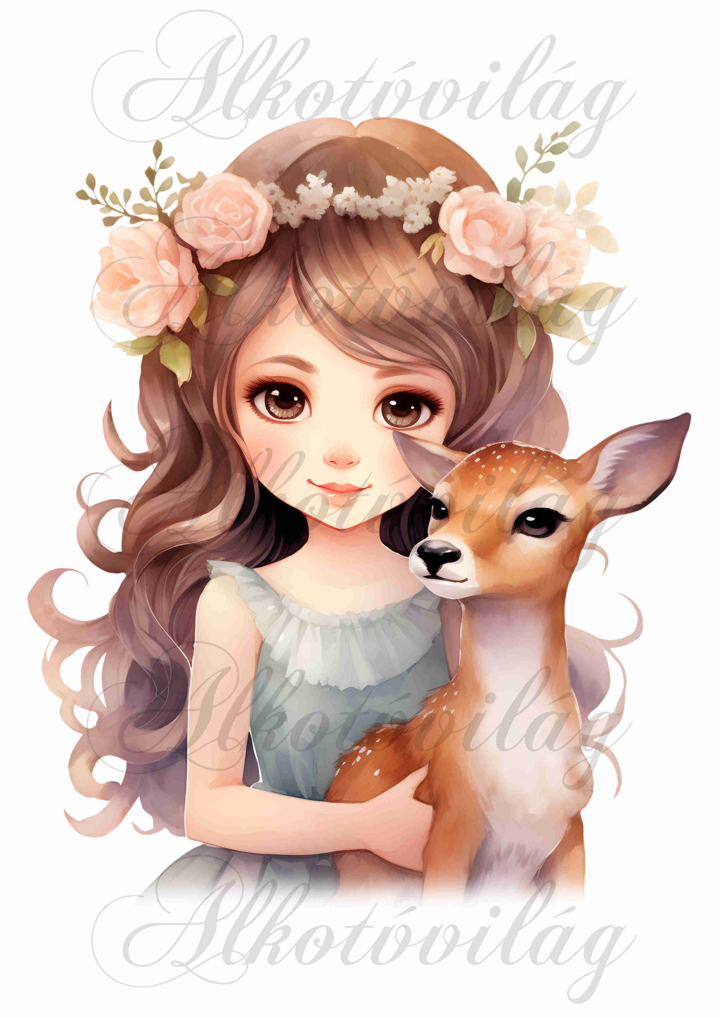 Párnablokk - vászontáska blokk - barna hajú hercegnő őzikével 2